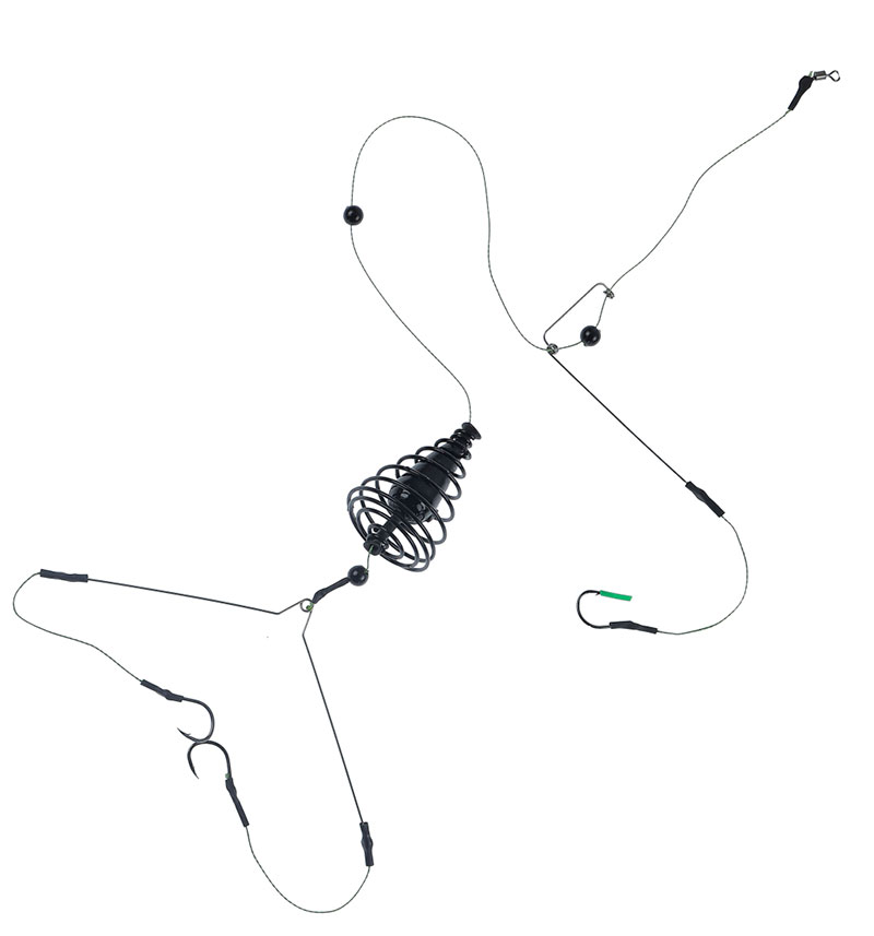 توزیع بهتر طعمه بهلطف فنر فلزی؛ طعمه بهآرامی آزاد میشود و ماهی را در نقطه صید نگه میدارد.