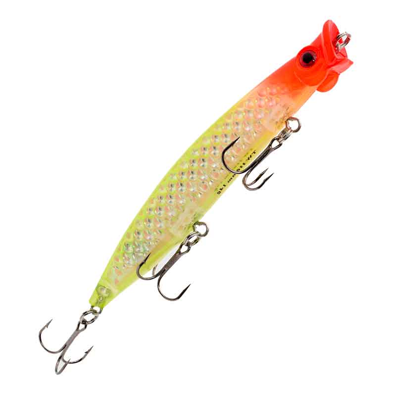 دهانه مقعر جلویی در این مدل، هنگام کشش باعث تولید صدا و پاشش شدید آب میشود. این صدا، مشابه طعمههاییست که در سطح تقلا میکنند یا زخمی شدهاند. حرکت همراه با صدای پاپ، اغلب باعث حمله فوری ماهیان شکاری میشود، حتی زمانی که تغذیه فعال ندارند.