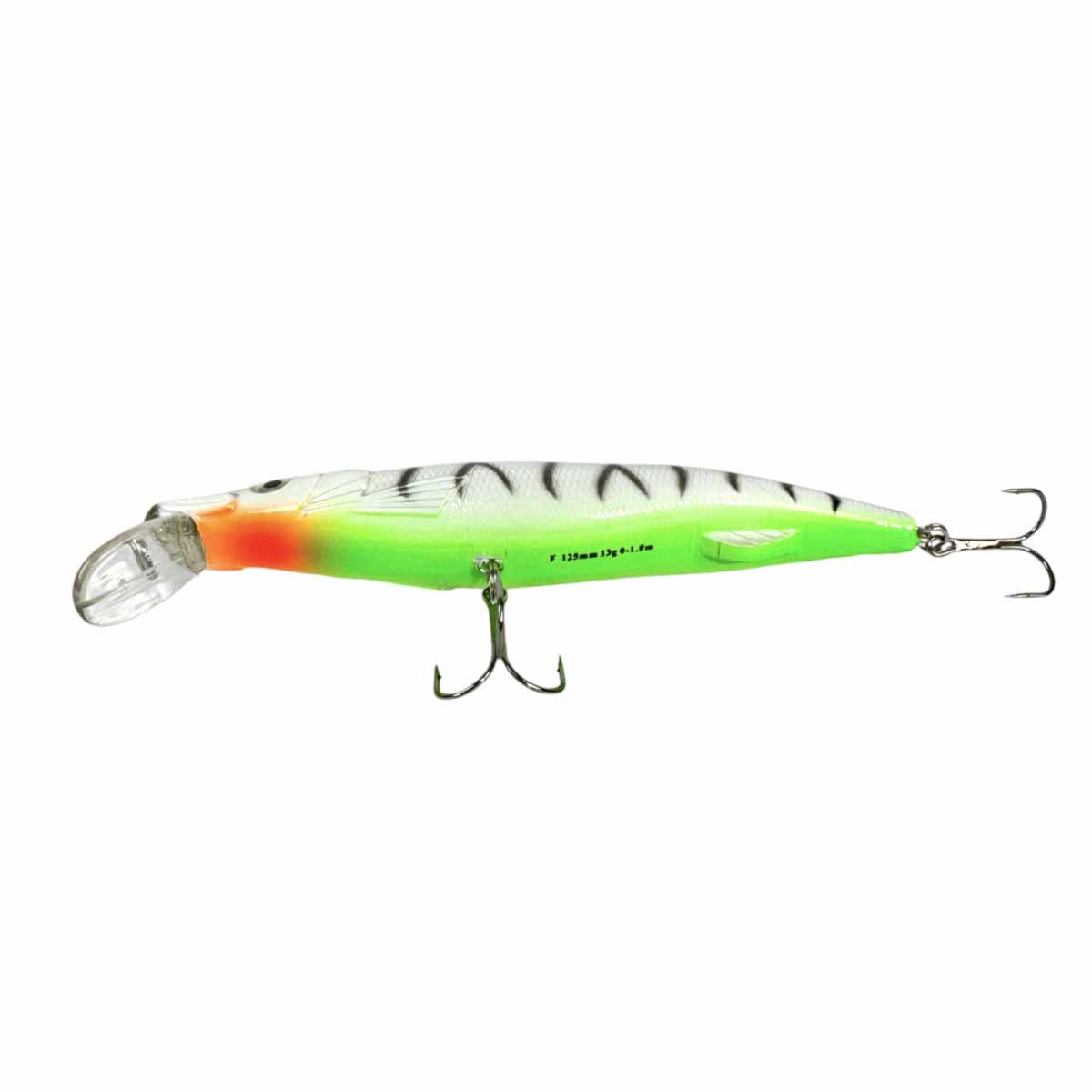 لور ماهیگیری (ووبلر) کایدا مدل KDF Pike رنگ ۷ با ترکیب رنگی خاص و الگوی طراحی واقعگرایانه، انتخابی بینظیر برای جذب شکارچیان فعال در شرایط نوری متغیر است.
