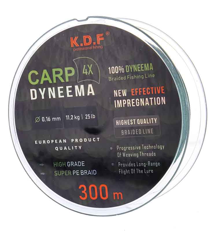 نخ براید کپوری Carp Dyneema سبز با قطر ۰٫۱۸ یا ۰٫۱۶ میلیمتر و متراژ ۳۰۰ متر، یک نخ ماهیگیری حرفهای و مقاوم برای صید کپور است. ساخته شده از الیاف داینیما با ۴ رشته بافت، این نخ دارای کشش بسیار پایین، مقاومت بالا در برابر سایش و دید کم در آبهای طبیعی است.