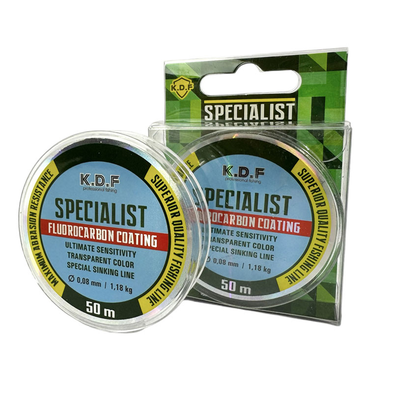 نخ ماهیگیری کایدا KDF Specialist با روکش فلوروکربن یک نخ شفاف، ضدسایش و غرقشونده است. هر رول 50 متری در قطرهای مختلف (0.08 تا 0.16 میلیمتر) عرضه میشود و تحمل فشار آن تا 4.1 کیلوگرم است. مناسب برای صید حرفهای در آب شور و شیرین.
