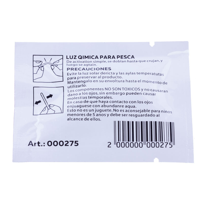با خمکردن یا شکستن محفظه داخلی، مواد داخل آن ترکیب شده و چراغ روشن میشود.