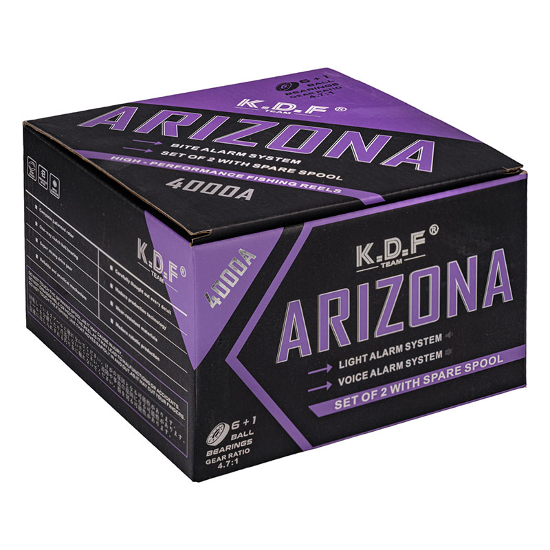 چرخ ماهیگیری کایدا Arizona با سیستم بایت رانر، اسپول فلزی کلاسیک و ترمز 10 کیلوگرمی طراحی شده است. این مدل در سایزهای 4000، 5000 و 7000 عرضه می‌شود و همراه با اسپول یدکی ارائه می‌گردد.